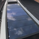 The roof is covered with solar panels …