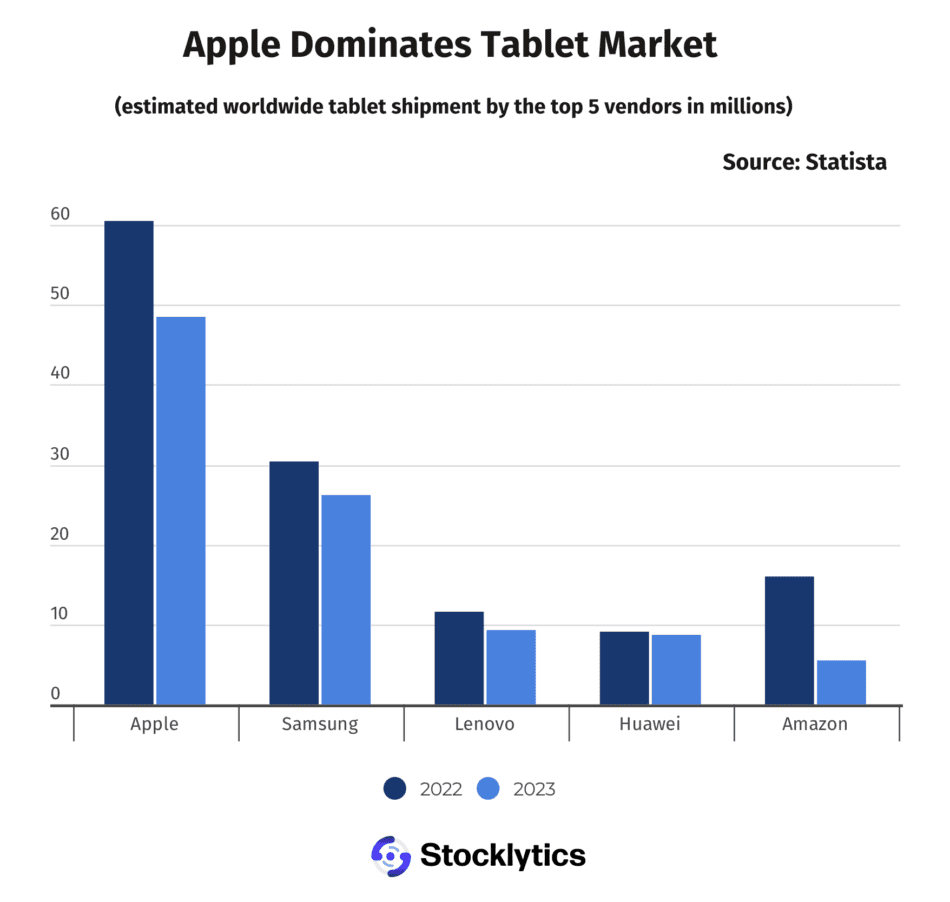 According to Stocklytics.com, almost two in every five tablets shipped globally in 2023 were iPads.
