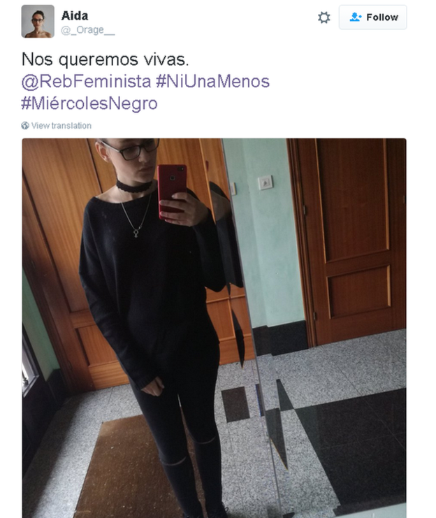 Many people tweeted pictures of black ribbons and used the hashtag “ni una menos” – not one woman less