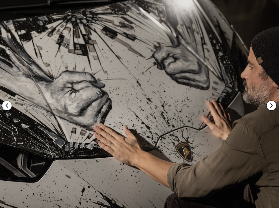 Paolo Troilo (born in 1972 in Taranto) is renowned for his unique hyper-realist fingerpainting technique, and this is precisely how the two models were created. “Minotauro”, painted on the bodywork of a Huracán EVO, symbolizes the sublimation between the artist’s vision and the iconic value of a brand like Automobili Lamborghini whose cars, prized by customers for their design, performance and quality, become true one-offs, on a par with works of art. Through the vigorous features of a male body reproduced by the hand of Paolo Troilo using his fingertips, the paintings express the dynamism, power, and the innermost emotions the artist felt when driving the Huracán EVO. His tribute to the vehicle lies in the fusion of the “man”, the “bull” (the symbol of Automobili Lamborghini) and the concept of “myth” expressed in the indomitable — supernatural and almost animalistic — force exuded by the male figure painted on the sides of the car.