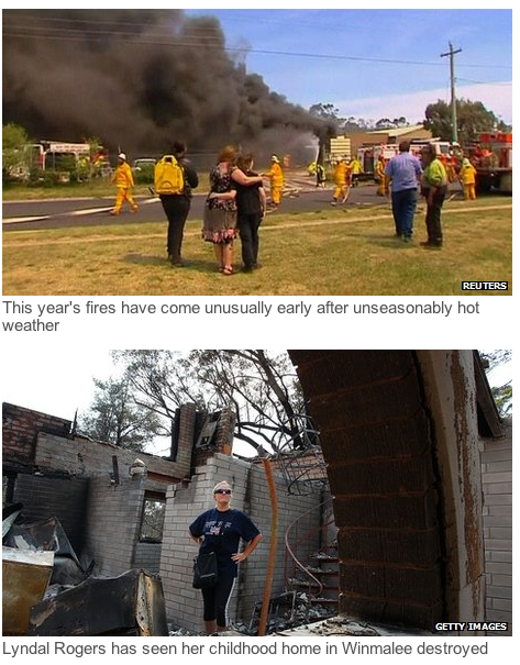 Our correspondent says the blazes have come unusually early in the season and follow Australia’s hottest year on record.