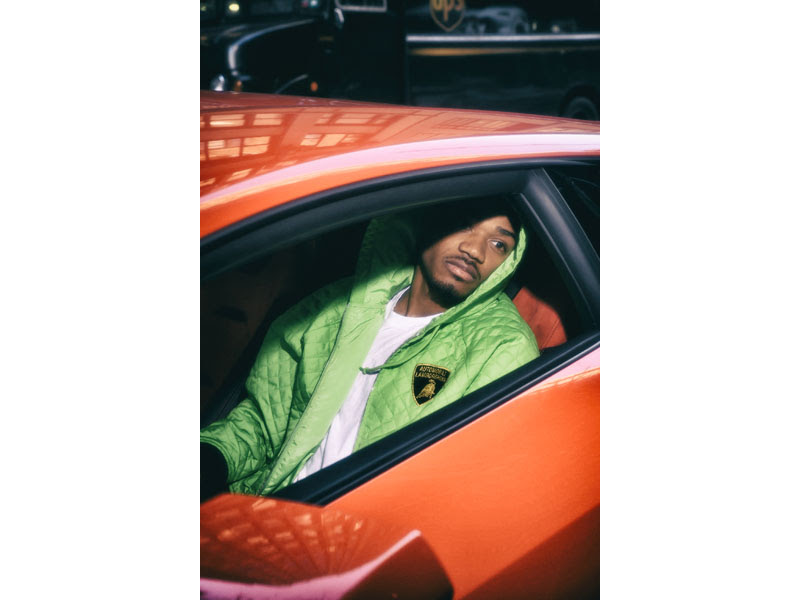 The group worn by the NYC skater – Tyshawn Jones – consists of a Hooded Work Jacket, S/S Shirt, Hockey Jersey, Coverall, T-Shirt, Skateboard and Beanie, featured in the most iconic Lamborghini colours.