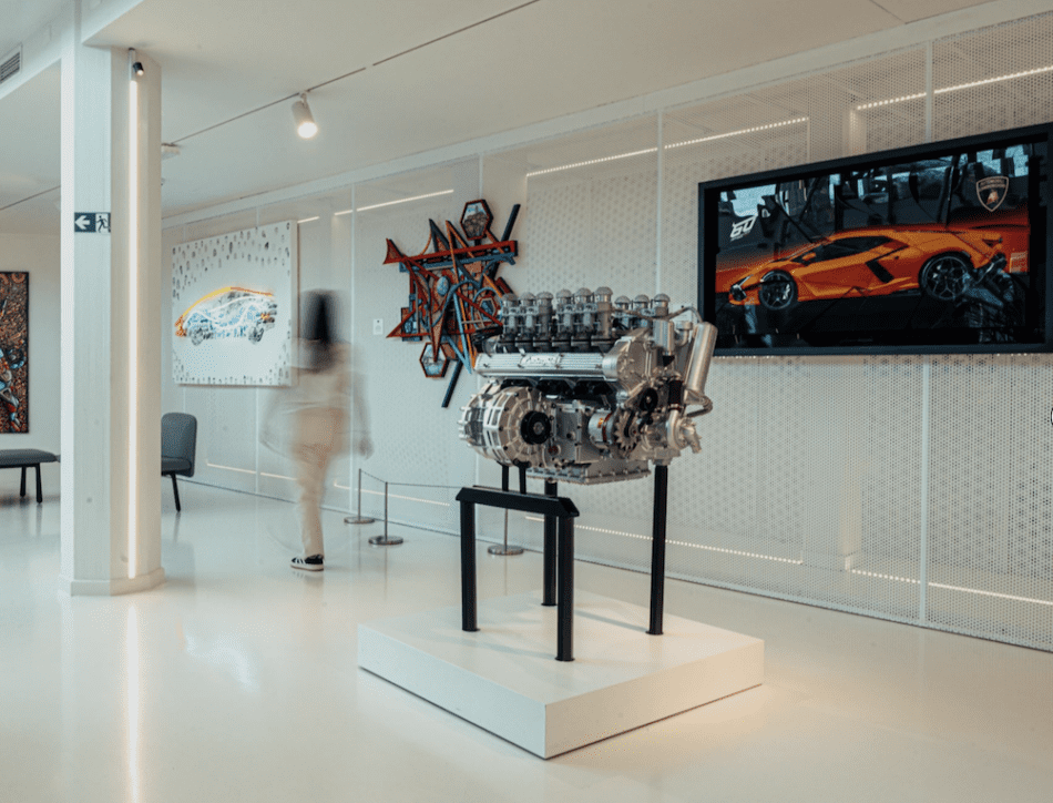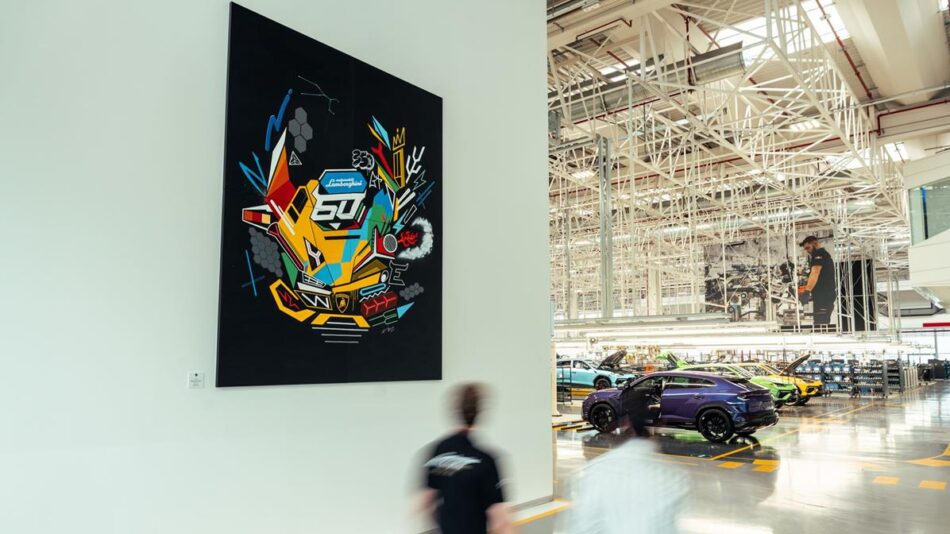 A modern art exhibition in the heart of the Sant’Agata Bolognese company, with over 100 works to celebrate the brand’s 60 years of innovation and design