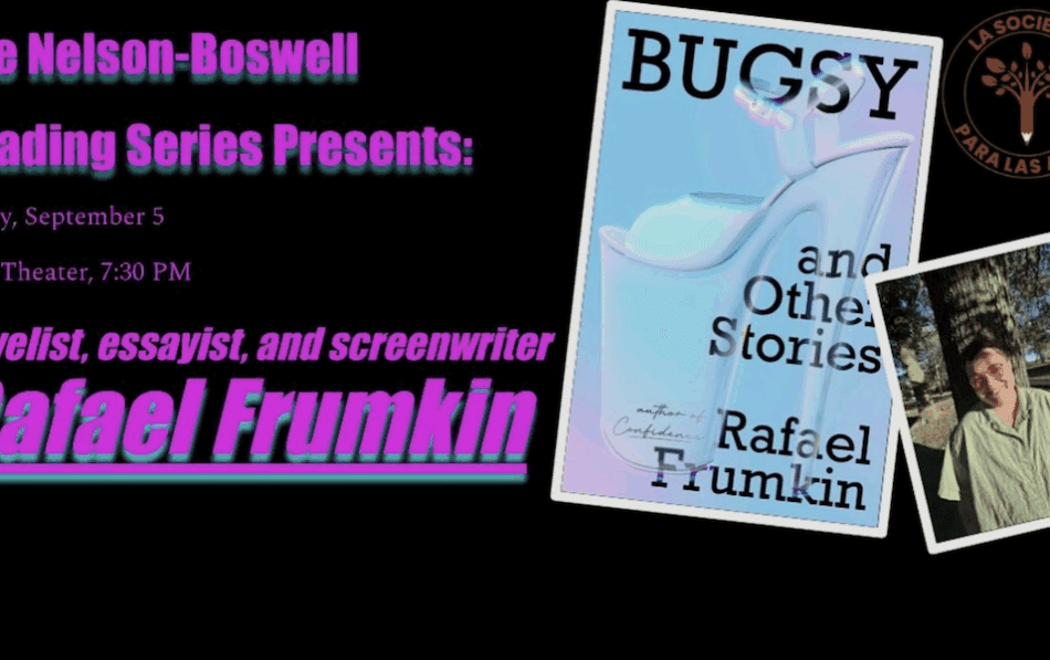 As part of the Nelson-Boswell Reading Series, La Sociedad para Las Artes will host a public reading by award-winning novelist Rafael Frumkin.