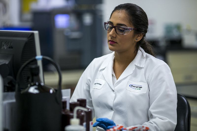An employee works at PuraCap Caribe lab on Aug. 29.Photographer: Xavier Garcia/ Bloomberg