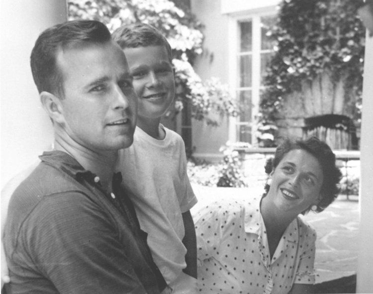 George W. Bush, center, poses with his mother and father in Rye, New York, during the summer of 1955. AP