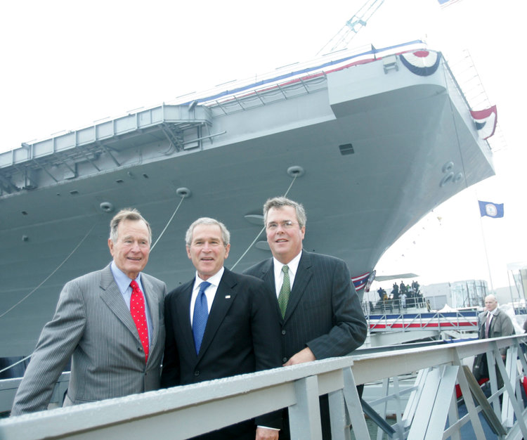 Father and sons pose in front of the USS George H.W. Bush aircraft carrier. Lawrence Jackson/AP