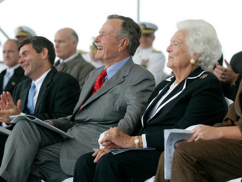 George and Barbara Bush attend the christening ceremony for the USS George H.W. Bush, October 2006. Eric Draper