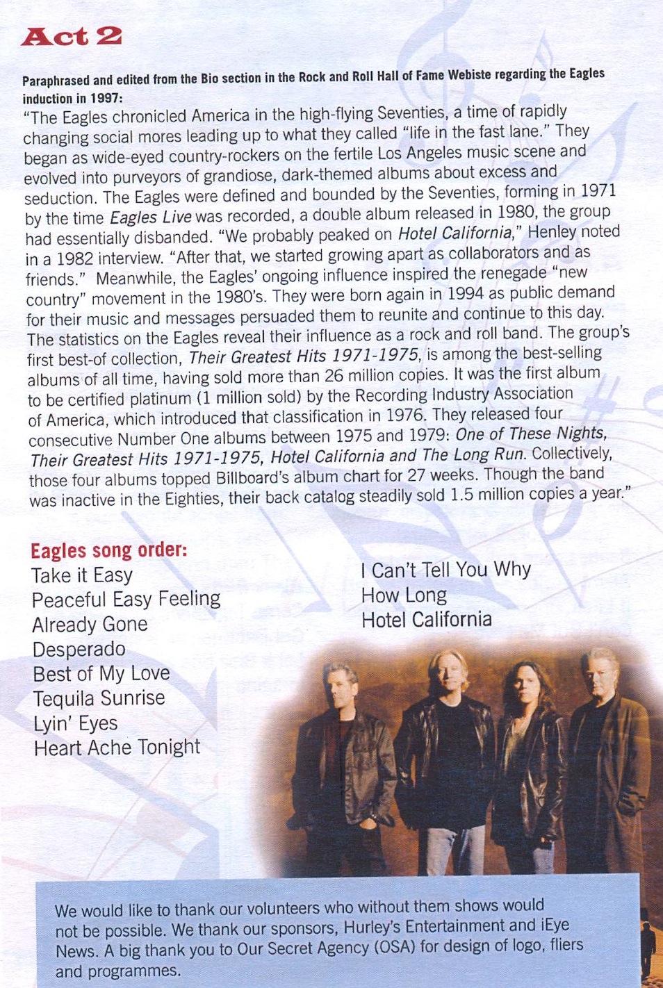 The selections are based on our experience as performers for over 30 years and seeing how audiences react to certain selections. Inevitably, we are going to miss some audience members’ personal favorite songs – forgive us – but we would be here all night to accommodate everything from these prolific artists.