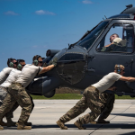 Loading the helicopter for transport was the first step in a rapid-rescue exercise conducted at Langley Air Force Base, Virginia, which was designed to test the maintainer’s and aircrew’s ability to quickly set up and conduct rescue operations away from their home station.US Air Force photo/Staff Sgt. Ryan Callaghan