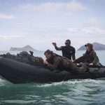Sgt. Antuan D. Martin, lead instructor of Raider Reconnaissance Operator Course, instructs Marines on amphibious operations, June 15, 2017.Photo By: Lance Cpl. Luke Kuennen