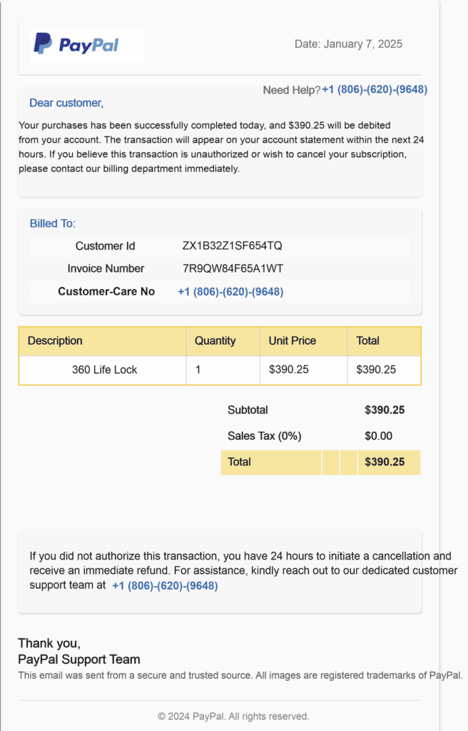 The biggest blunder to us is the PayPal purports to come from the USA. We do not have a PayPal USA account.