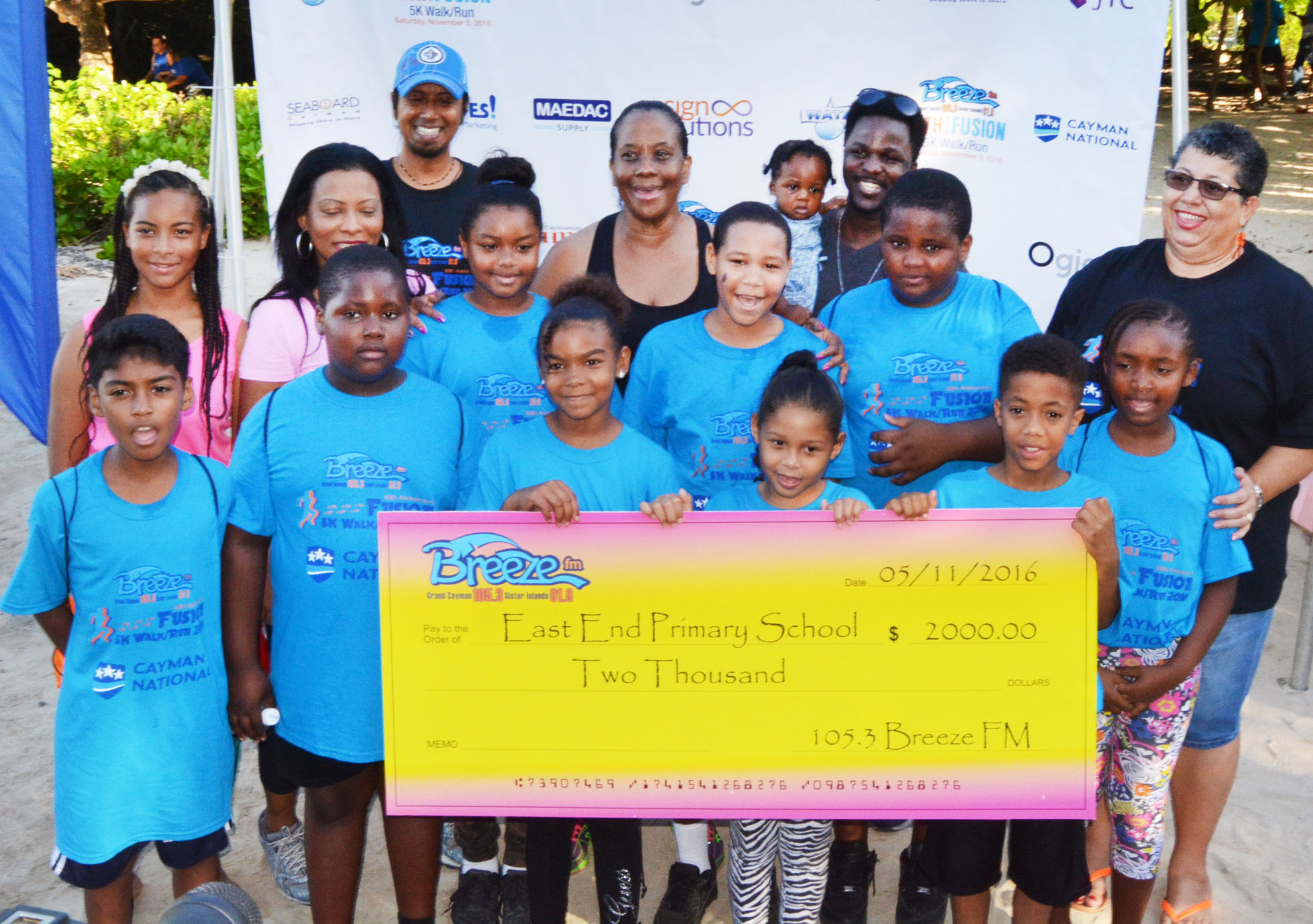 Funds raised at the Breeze Fusion 5K Run/Walk (held last Saturday, 5 November, 2016) have benefitted the National Council of Voluntary Organisations (NCVO), East End Primary School, and the Edna Moyle Primary School in North Side, with $2,000 donated to each.