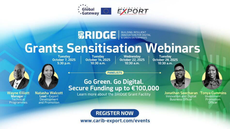 Are you ready to lead the Caribbean’s green transition? Through the BRIDGE Grant Facility, your business could receive up to €100,000 in EU co-financing to invest in sustainable growth.