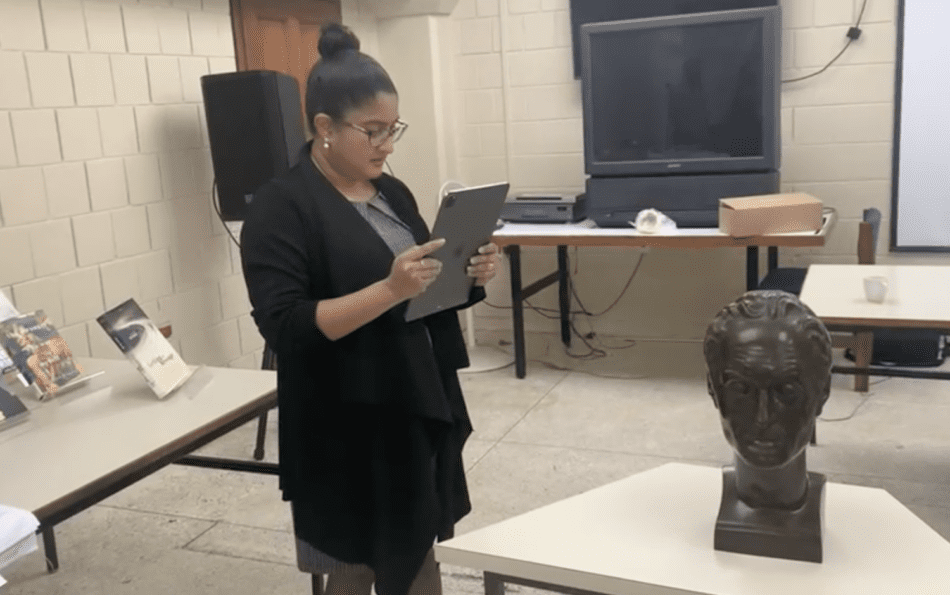 Ms. Jolie Rajah, a Faculty Liaison Librarian at the Alma Jordan Library, performs a 3D scan of a unique collection item, crafting its precise digital twin for enhanced archival and educational purposes.