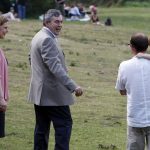 Gordon Brown and Sarah Brown walk through Whitlingham Country Park on a low key recession-proof holiday in Norfolk during the summer of 2008.