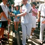 John Major, ice cream in hand, greets neighbours in Candeleda, Spain, during one of his holidays in the 1990s.