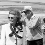 Margaret Thatcher glances out to sea while husband Denis takes a photo near Padstow on their annual summer holiday in Cornwall.