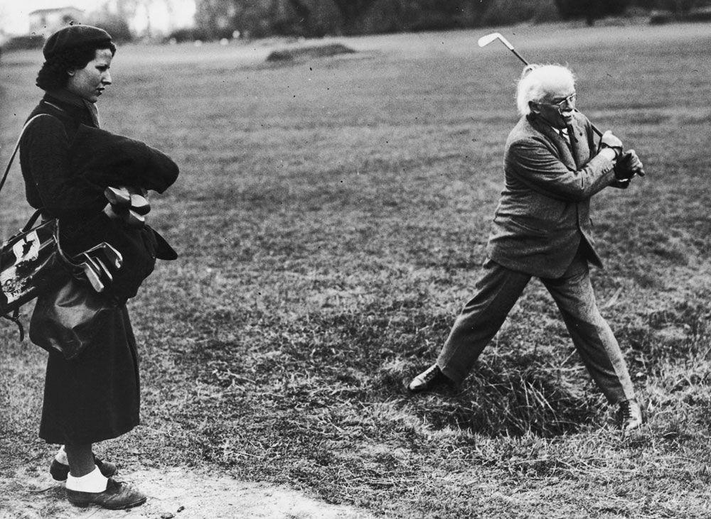 David Lloyd George with his daughter Megan on the golf course at Cagnes-sur-Mer during a holiday in France in 1938.