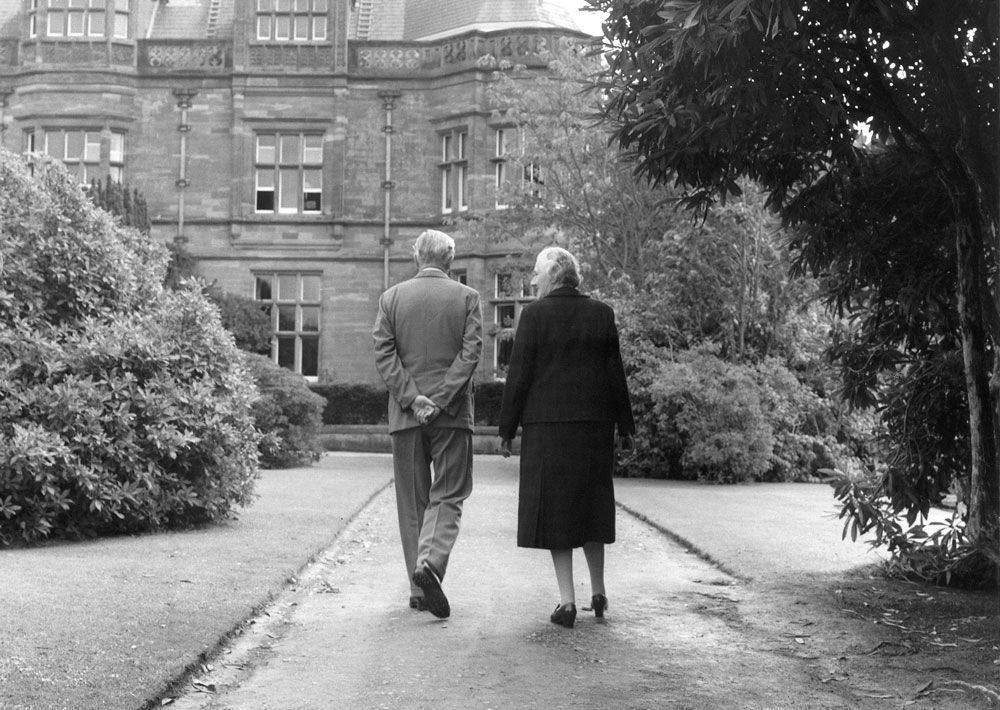 Harold MacMillan and Lady Dorothy Macmillan relax in August 1962 at Holker Hall in Lancashire.