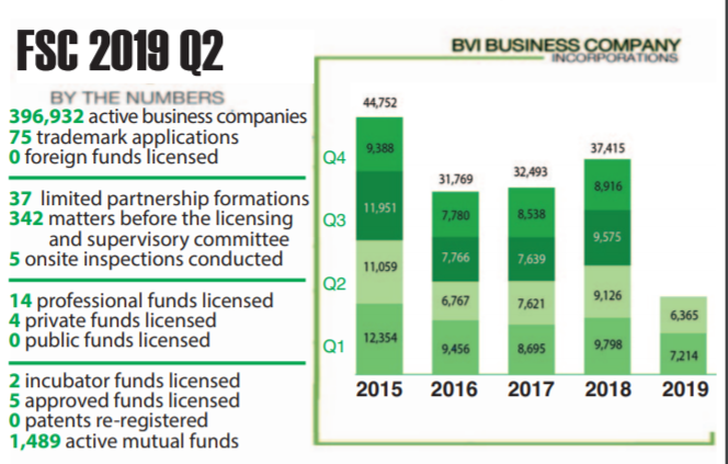 The Virgin Islands financial services industry continued a downward slide in the second quarter of 2019, incorporating 6,365 new companies to turn in its worst quarter since 2003, when the Financial Services Commission began issuing quarterly reports, and prompting concern that new legislation combined with overall global economic