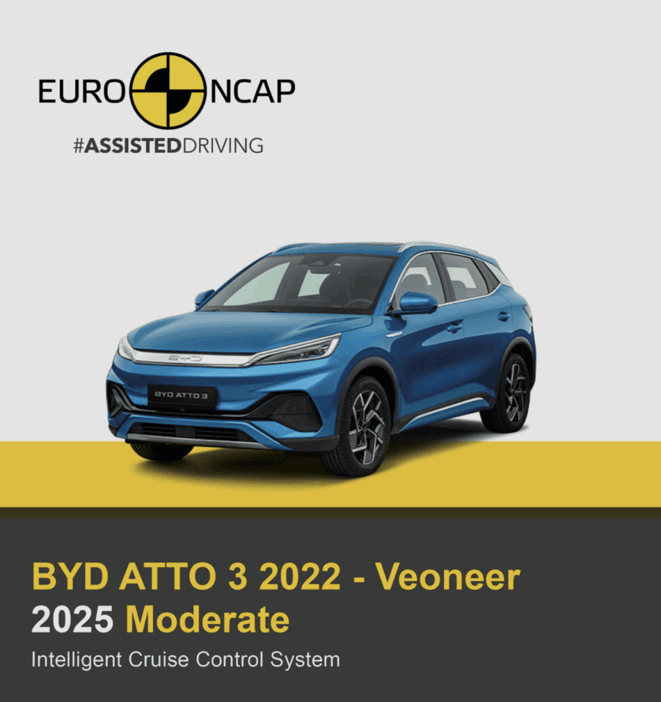 LEUVEN, BELGIUM – BYD has responded to the ’Not Recommended’ grading which Euro NCAP gave to the ATTO 3’s Assisted Driving system in 2024. Intelligent Cruise Control – BYD’s name for its Level 2 system – is now rated as Good for the latest vehicles, and earlier cars are improved.