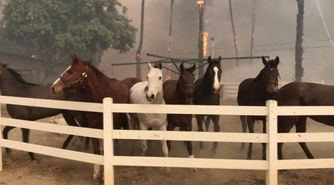 In the last week, only one death has been reported, a 70-year-old woman who died Wednesday in a car accident as she attempted to flee the flames in Ventura County. Scores of horses have died, including at least 46 at a thoroughbred training facility in San Diego county.