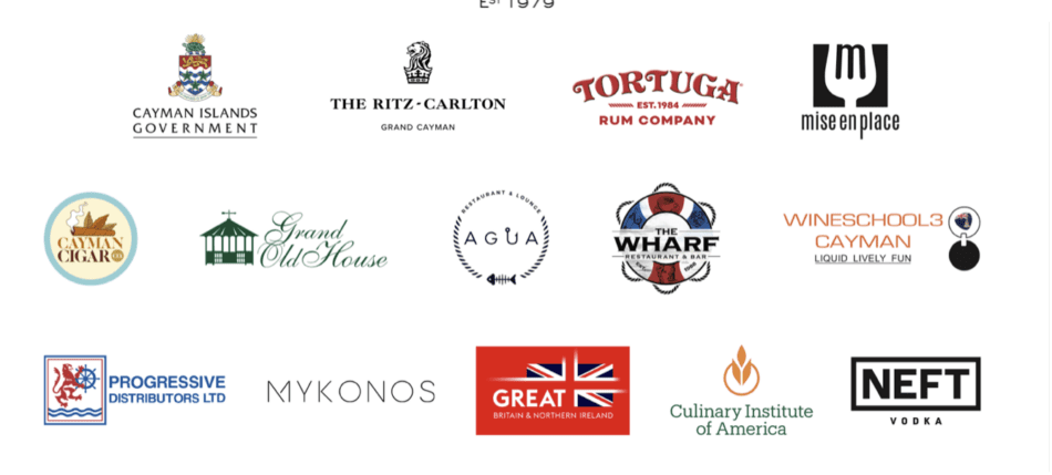 We are grateful for the generous support of our esteemed sponsors and partners, The Cayman Islands Government, The Ritz Carlton Grand Cayman, Tortuga Rum Company, NEFT Vodka, Mise en Place, Grand Old House, Mykonos, Agua Hospitality Group, The Wharf, PDL Distributors, Culinary Institute of America, Cayman Cigar, and GREAT Campaign.