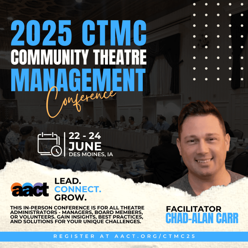 Whether you’re running the show full-time or wearing all the hats as a volunteer, AACT’s Community Theatre Management Conference (CTMC) is here to help you lead with confidence and connect with others who truly get it.