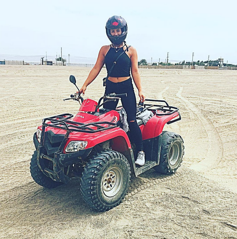 Others show them driving dune buggies in Peru, while another appears to show Roberge getting a leg tattoo in Tahiti. Lagacé is pictured on her own account wearing a necklace made from beads in the shape of marijuana leaves.