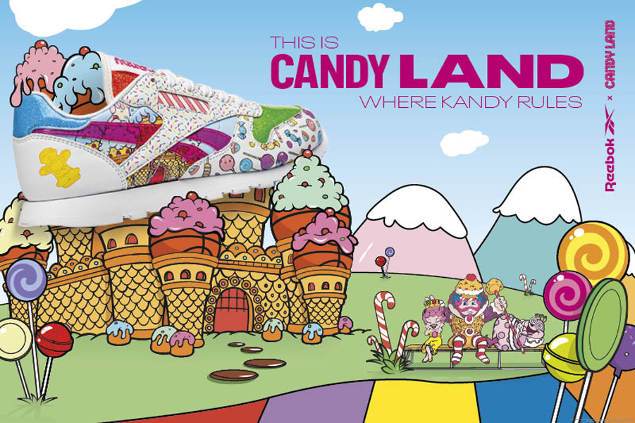Candy Land – “The Classic Game of Sweet Adventure†– is recognized today as one of the world’s most cherished pop culture franchises, bringing friends and family together with its playful characters, amazing color palettes and competitive gameplay. Similarly, Reebok, known for its own rich history and defiant footwear design dating back to the 1950’s, continues to foster an active, creative and connected sneaker community with bold offerings encouraging wearers to escape the everyday and follow their own path.
