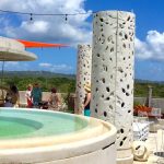Vieques, one of the best-kept secret Spanish Virgin Islands, is lined with a number of top beach bars but the one that sits atop the rooftop of the modern El Blok Hotel is especially unique. Not only are the panoramic views unbeatable, but the colorful lounge chairs are a great place to work on getting that island glow while cocktail-sipping and you can cool off from the Caribbean sun by taking a dip in the circle-shaped concrete swimming pool.