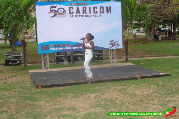 Regional cultural artistes also paid tribute in song, dance, steel band music, and other art forms during the CARICOM 50th Anniversary Concert. Mr. Kervin “Infamus” Benjamin, Musical Ambassador to the Ministry of Sports and Creative Economy represented Saint Kitts and Nevis performing his popular tribute to the Federation “Love St. Kitts Bad” at the Anniversary Concert.