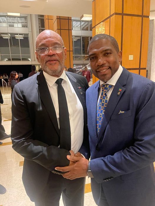 Prime Minister of Saint Kitts and Nevis, Hon. Dr. Terrace Drew, and PM of Haiti, Hon. Ariel Henry at the 45th Regular Meeting of the Conference of Heads of Government of CARICOM in Port of Spain, Trinidad and Tobago