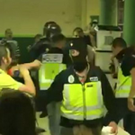 TV footage showed riot police using batons to beat a group of firefighters who were protecting crowds in Girona.