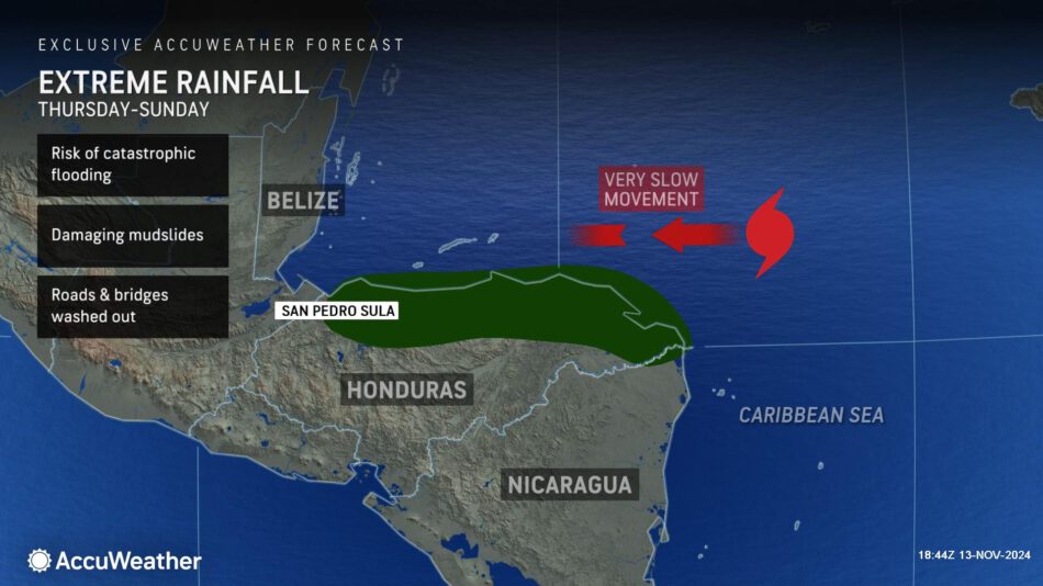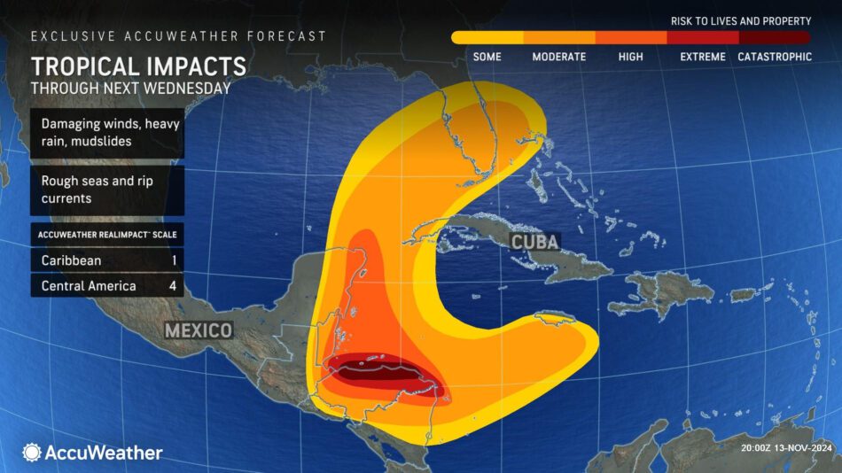 AccuWeather Global Weather Center – Nov. 13, 2024 – AccuWeather hurricane experts have issued a catastrophic risk to lives and property in parts of Central America due to an increasing risk of life-threatening flash flooding from a brewing hurricane threat.