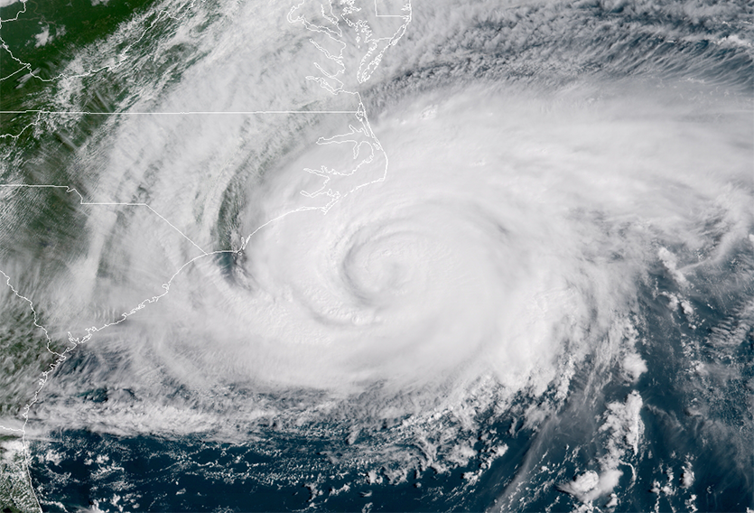 Figure 1. GOES-16 image of Hurricane Florence at 10:30 am EDT September 13, 2018. Image credit: NOAA/RAMMB.
