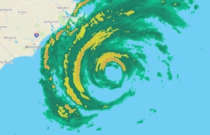 WU depiction of NWS/NEXRAD radar showing Hurricane Florence off the coast of North Carolina at 10:59 am EDT Thursday, September 13, 2018.