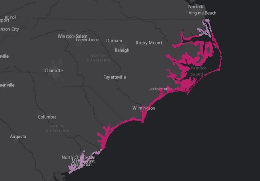 9-13 ft: Cape Fear NC to Cape Lookout NC, including the Neuse, Pamlico, Pungo, and Bay Rivers