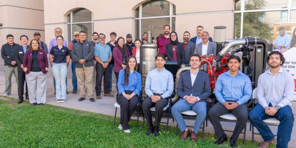 Faculty, staff, students and Cummins leadership gather around the newly donated diesel engine gifted to New Mexico State University’s College of Engineering, with the goal of strengthening hands-on student learning. The ceremony was held during National Engineers Week celebrations at…