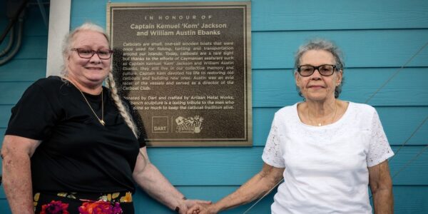 Mrs. Mary Ebanks (left) and Mrs. Ola Jacks (right) the wives of the two seafarers honoured at the recent Cayman Catboat sculpture dedication to Mrs. Ebanks late husband William Austin Ebanks and Mrs. Jackson’s husband Captain Kemuel Jackson. Dart joined…