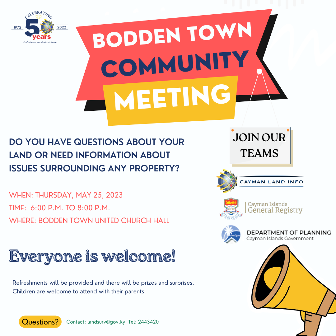 Land Registration Rectification Fees temporarily waived in Celebration of Lands & Survey 50th Anniversary/Bodden Town Community Meeting May 25