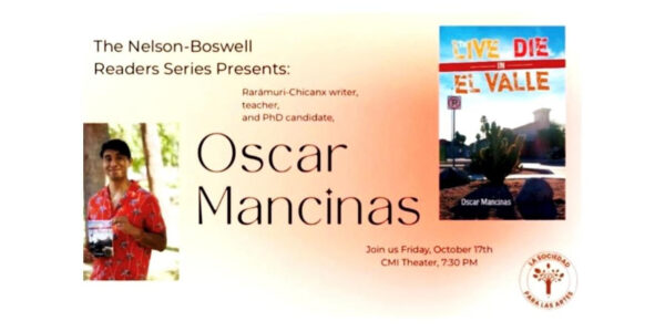 Northern Arizona University assistant professor of creative writing Oscar Mancinas will read from “To Live and Die in El Valle” at 7:30 p.m. Friday, Oct. 17 in NMSU’s CMI Theater in Milton Hall, Room 171as part of NMSU’s Nelson-Boswell Reading…