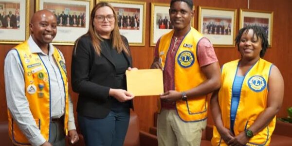 Ephantus Thumbi, First Vice President of Lions Club of Tropical Gardens; Hon. Katherine Ebanks-Wilks, Minister for HES; Dr Andrew Robinson, Breast Cancer Awareness Chairperson, Lions Club of Tropical Gardens; Jeremy Doyley-Downie, Breast Cancer Awareness Co-chairperson and Second Vice President of…