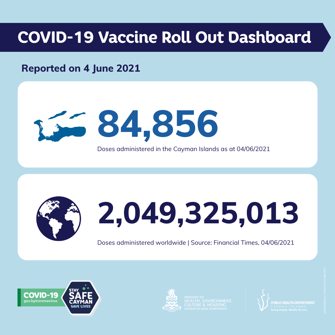 Cayman: 4 June 2021 COVID-19 Update, 3 NEW Positives, 84,856 vaccinations given