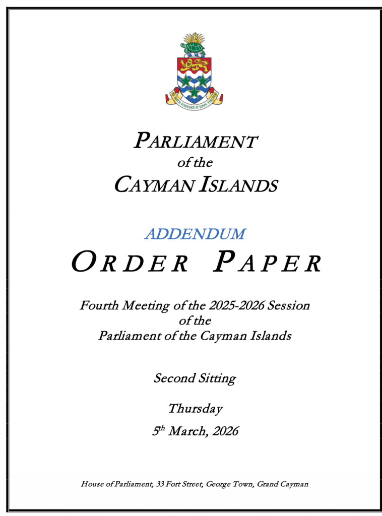 Cayman: ADDENDUM Order Paper – Second Sitting of the Fourth Meeting 2025-2026 Session, Thursday, 5th March 2026