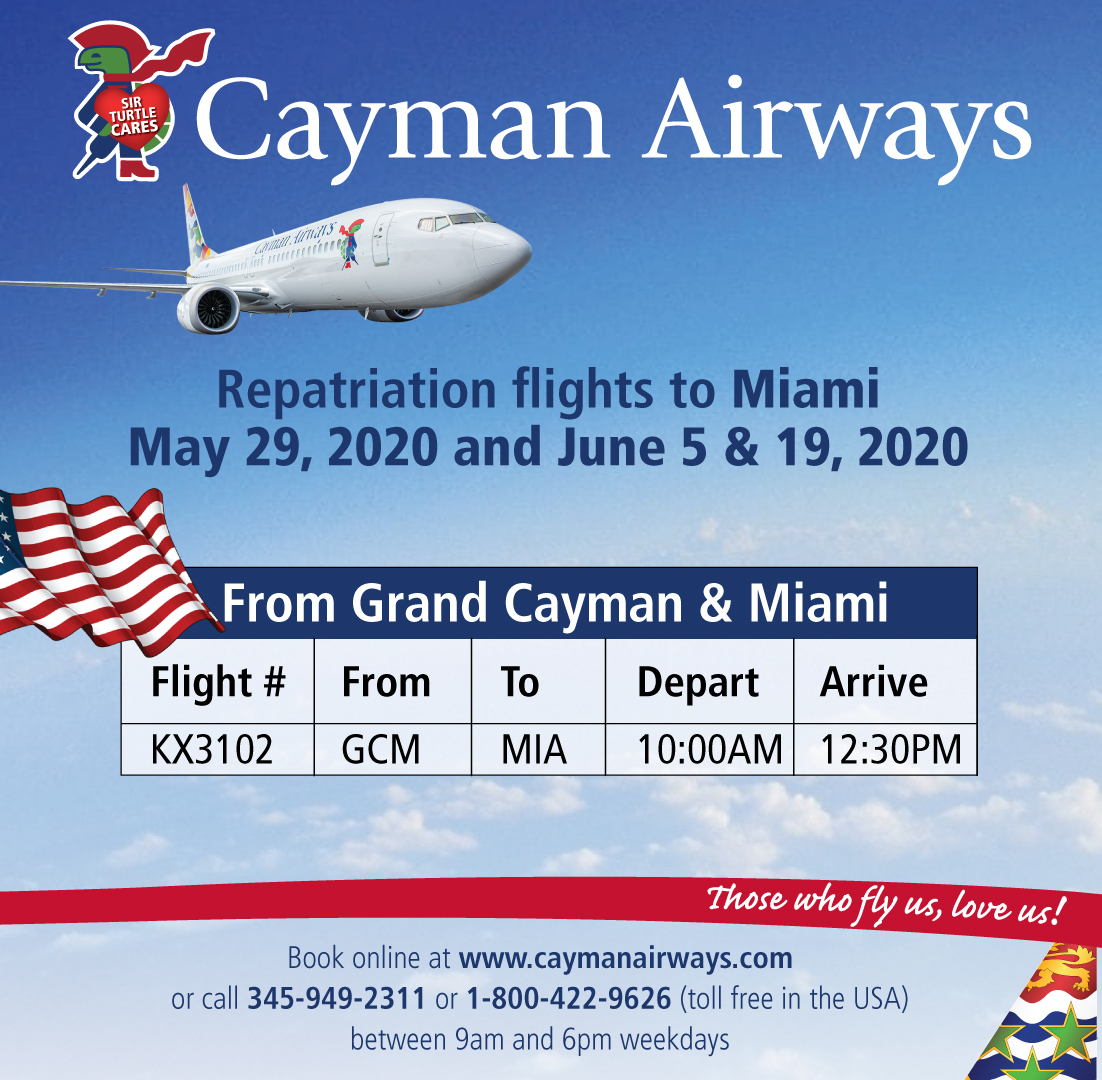 In partnership with the Cayman Islands Government, Cayman Airways Limited (CAL) has confirmed the following three additional repatriation flights from Grand Cayman to Miami: