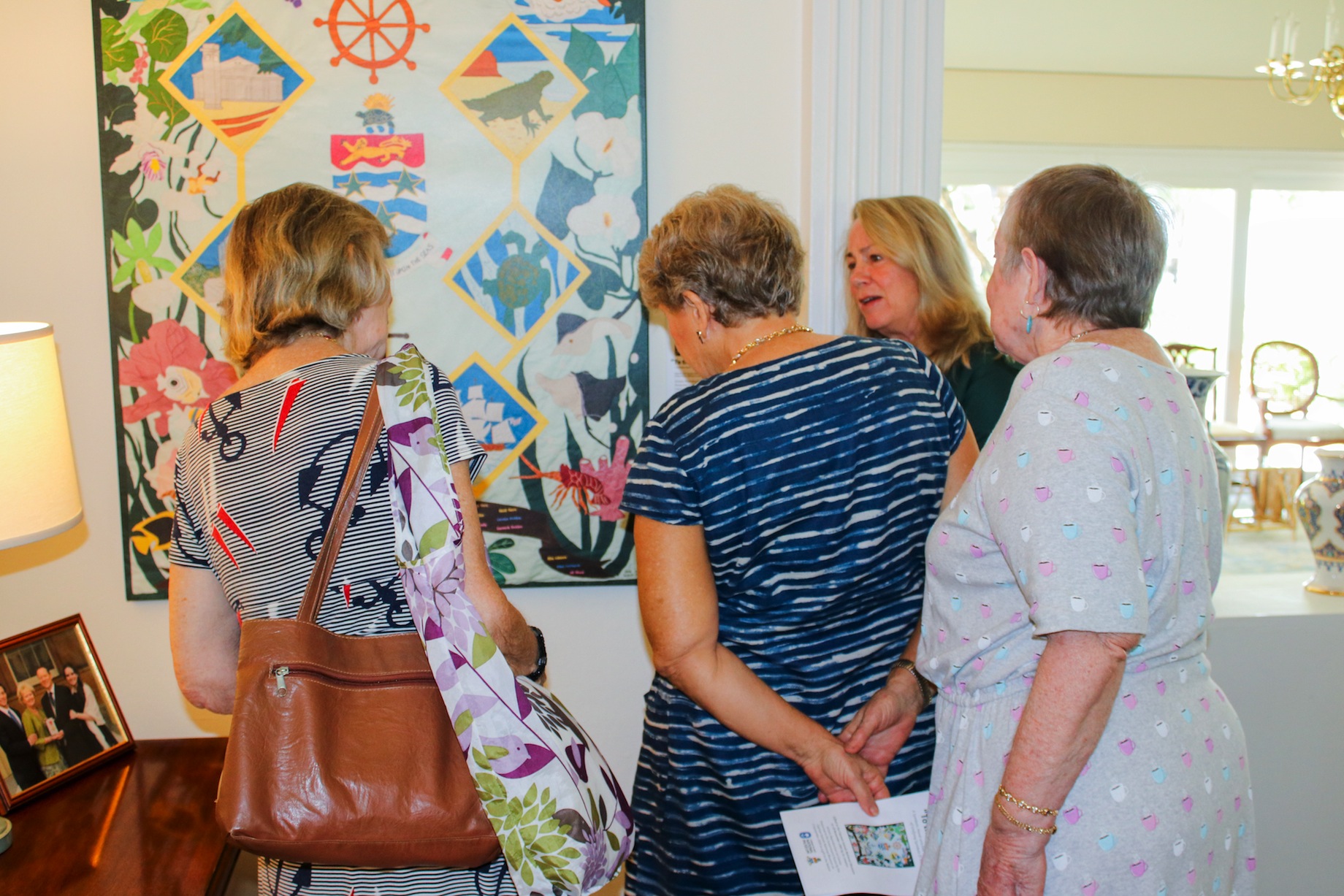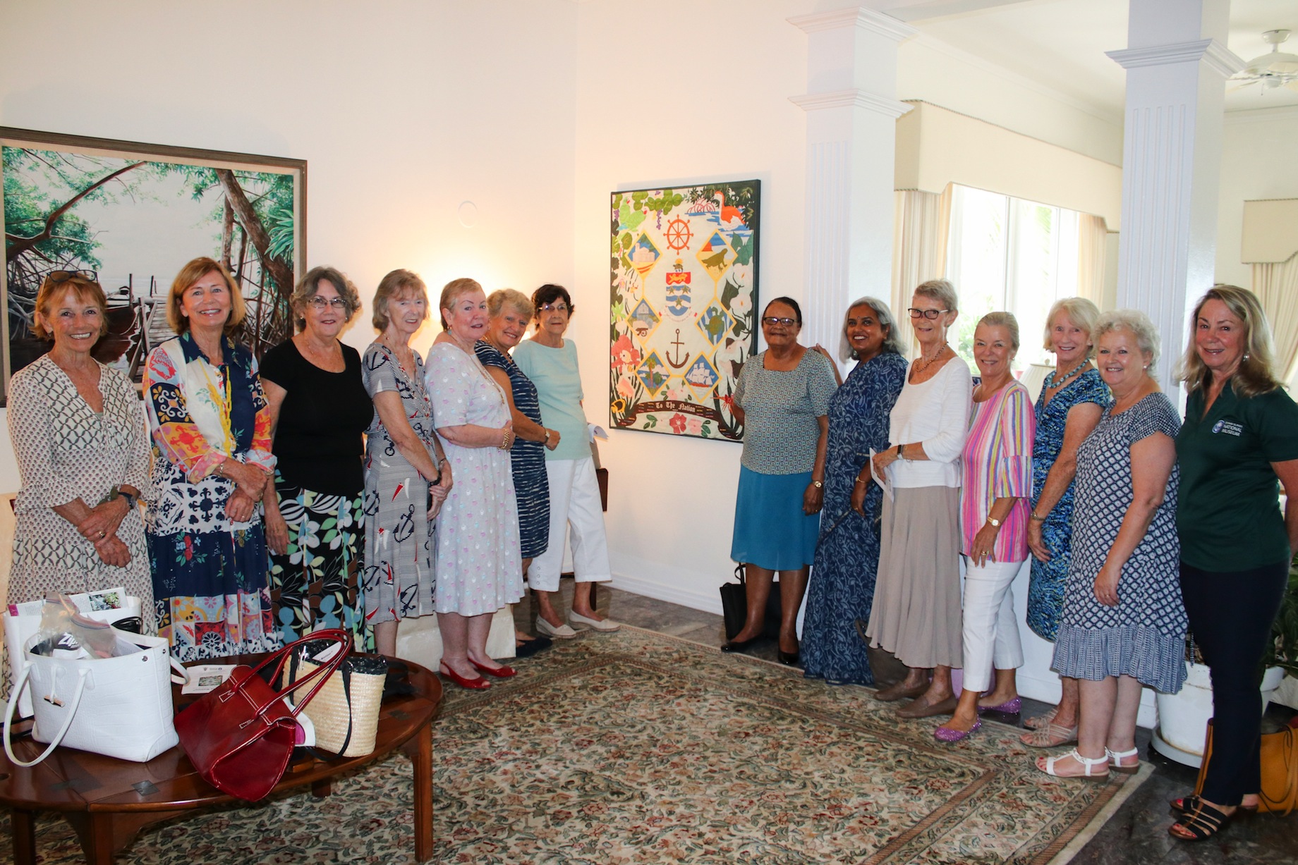 Mrs. Roper thanked the National Museum. “The quilting group were absolutely delighted to see it up in Government House – as am I – and so also thank you to the Museum”. Present for the gathering were a group of 15 ladies, 3 of whom were the original creators of the 1994/95 piece. Ms. Carmen Conolly, Ms. Jill Wood and Mrs Sybil Watler recalled working on this work-of-art and were delighted to see the reproduction hung in the foyer of the Government House.