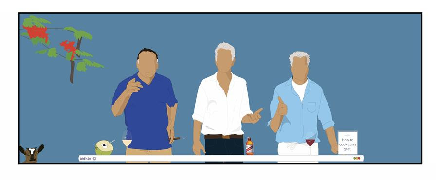Dready’s ‘how to cook curry goat – 3 amigos cayman cookout’ was commissioned in 2018 by the Ritz-Carlton, Grand Cayman to celebrate the 10th anniversary of the annual Cayman Cookout, an event spearheaded by Eric Ripert and attended regularly by Anthony Bourdain and José Andrés, all of whom feature in the colourful piece. The two chefs, longtime friends of Bourdain’s, discussed their collective love for the Dready piece in a recent (May 30th) Instagram Live video.