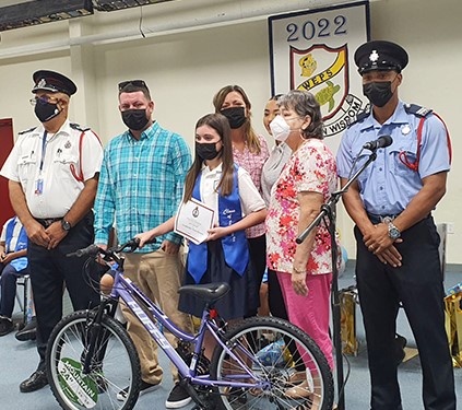 Grand Cayman, 20 July 2022 – The Cayman Brac Fire Service donated four bicycles to the top boys and girls of the Spot Bay and Creek primary and the West End primary schools in Cayman Brac. Each student received the gift during school graduations on 27 June 2022.